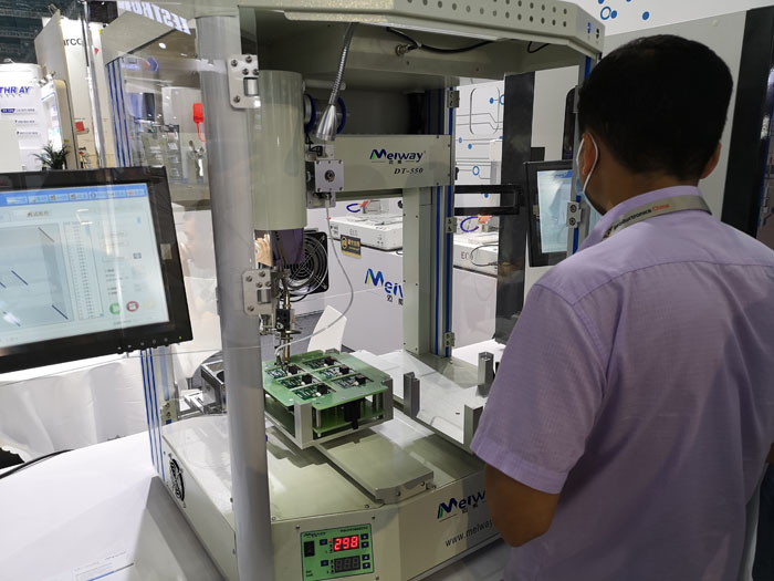 這些走在焊錫前端的機(jī)器讓游客在邁威展位前駐足觀看,流連忘返。